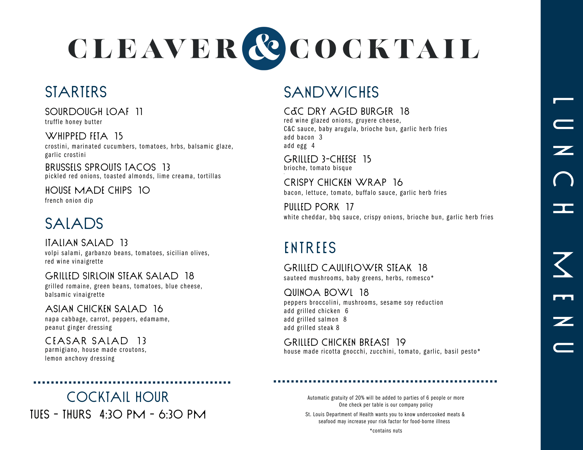 *sandwiches served with garlic herb fries